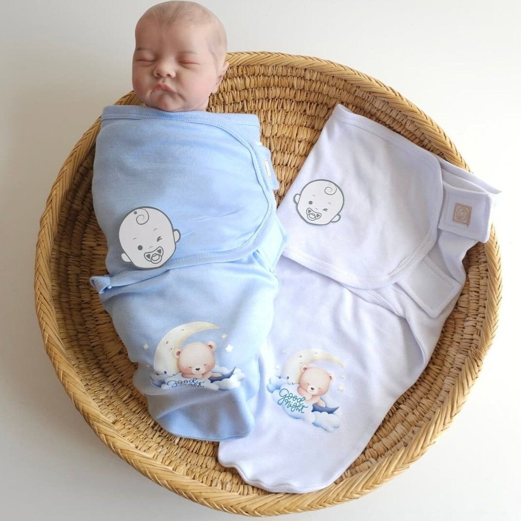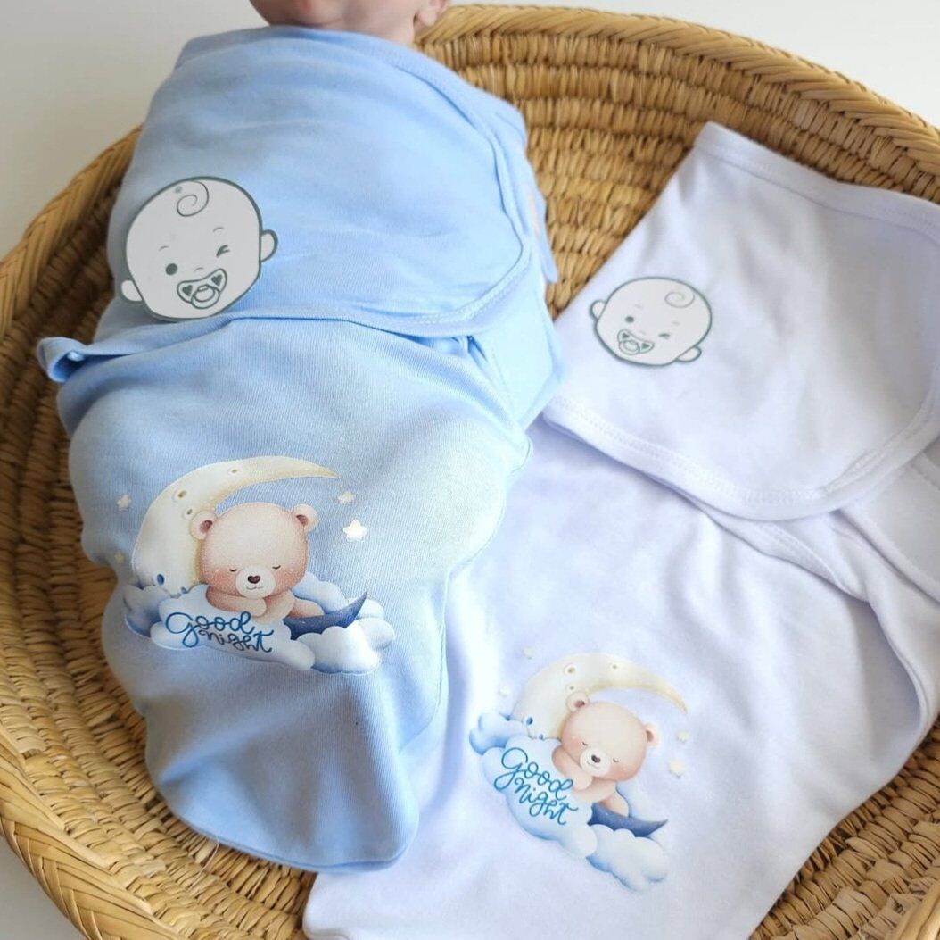 Offrez à votre bébé un sommeil paisible ave notre emmaillotage 100% coton, doux et respirant. Facile à enfiler grâce à ses bandes velcro ajustables, il maintient bébé bien au chaud et en sécurité. Disponible en blanc, rose et bleu avec un motif tendre “good night”