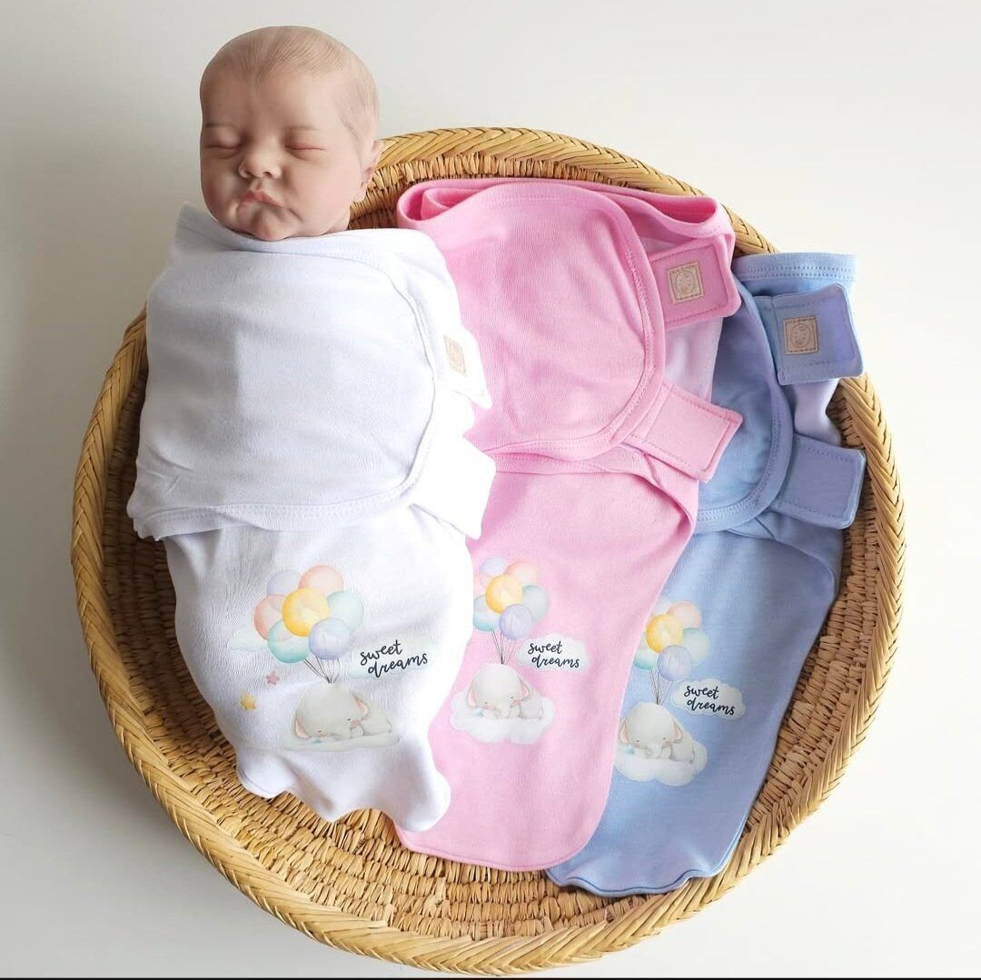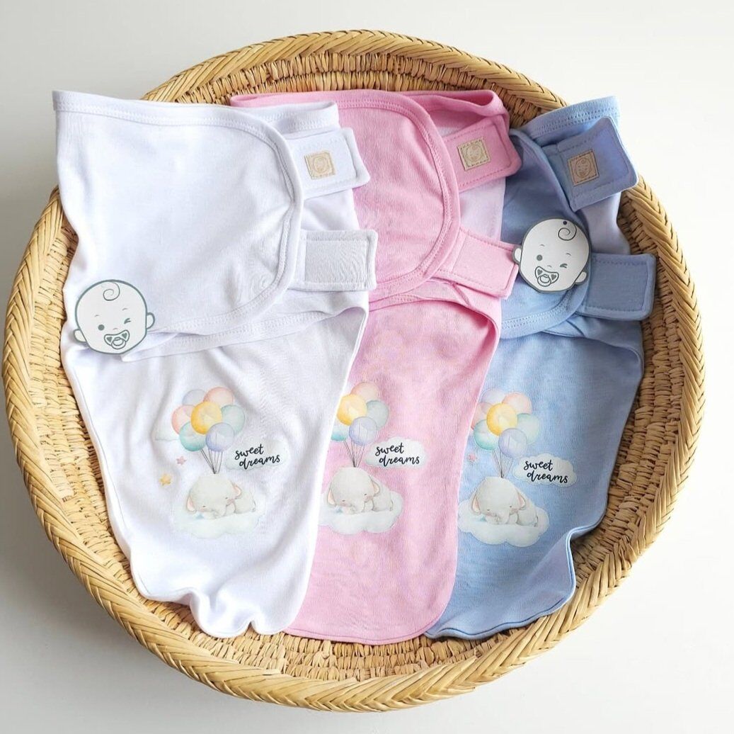 Offrez à votre bébé un sommeil paisible ave notre emmaillotage 100% coton, doux et respirant. Facile à enfiler grâce à ses bandes velcro ajustables, il maintient bébé bien au chaud et en sécurité. Disponible en blanc, rose et bleu avec un motif tendre “sweet dreams”