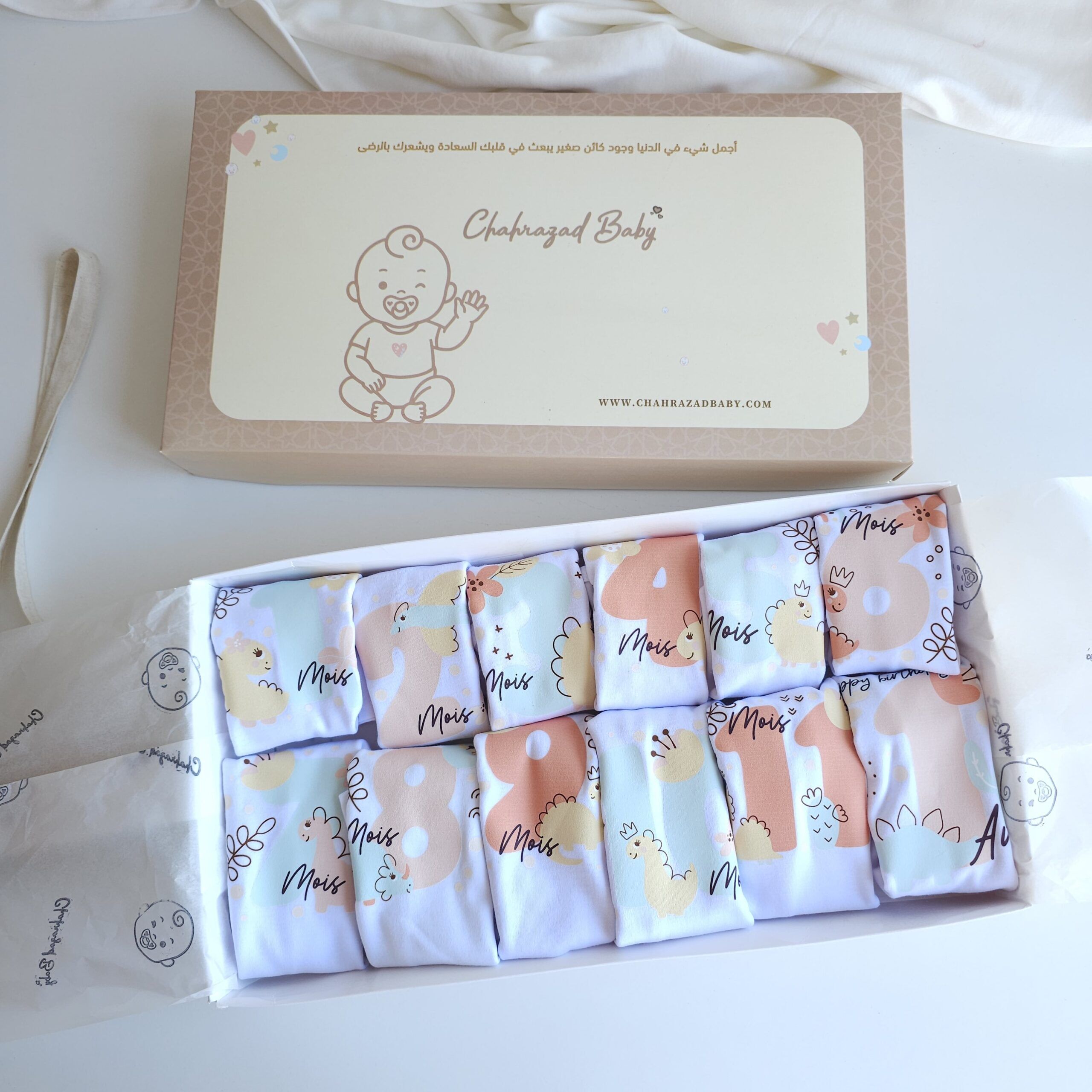Offrez à votre bébé un coffret unique de 12 bodies en coton doux, illustrés avec de jolis motifs et numérotés de 1 à 12 mois. Idéal pour capturer chaque étape de croissance de votre petit trésor et créer de magnifiques souvenirs en photos. Confortables, respirants et délicats pour la peau sensible de bébé, ces bodies sont parfaits comme cadeau de naissance ou pour vos propres moments inoubliables