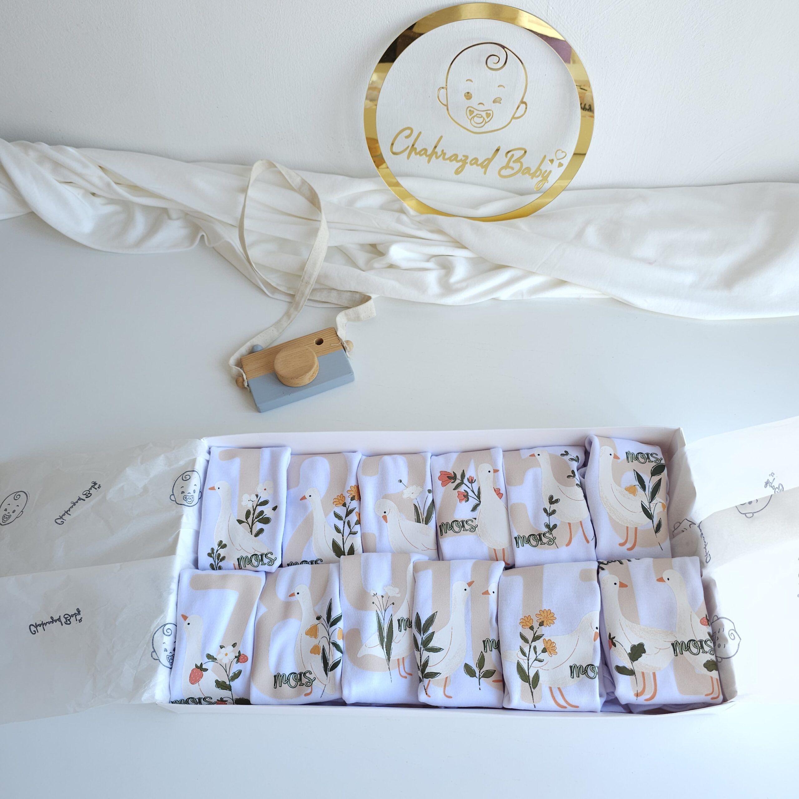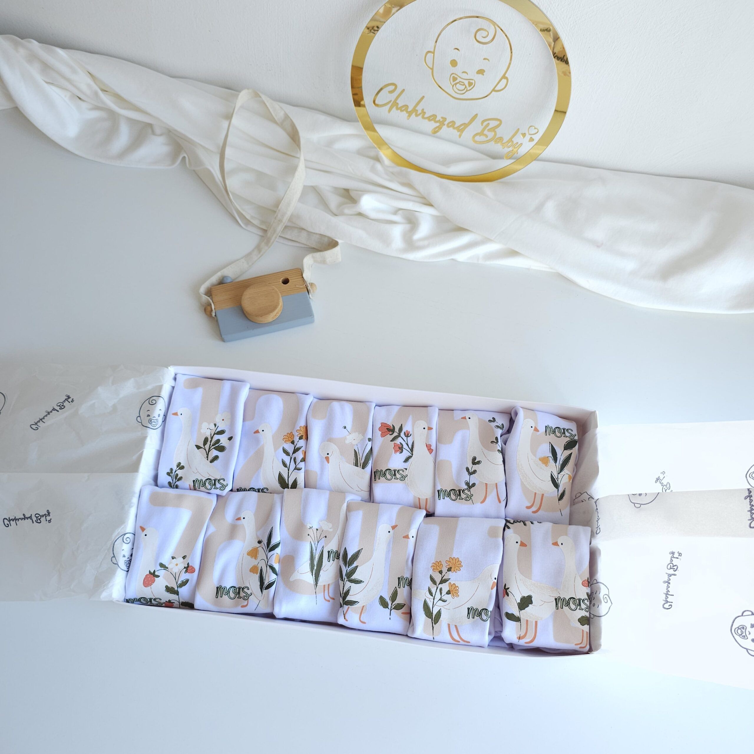 Offrez à votre bébé un coffret unique de 12 bodies en coton doux, illustrés avec de jolis motifs et numérotés de 1 à 12 mois. Idéal pour capturer chaque étape de croissance de votre petit trésor et créer de magnifiques souvenirs en photos. Confortables, respirants et délicats pour la peau sensible de bébé, ces bodies sont parfaits comme cadeau de naissance ou pour vos propres moments inoubliables