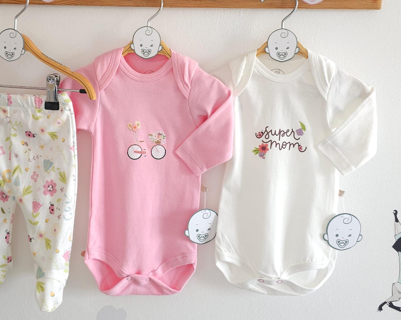 - Design : 2 bodies avec des motifs “Super Mom” tendres et un pantalon assorti pour un style charmant.