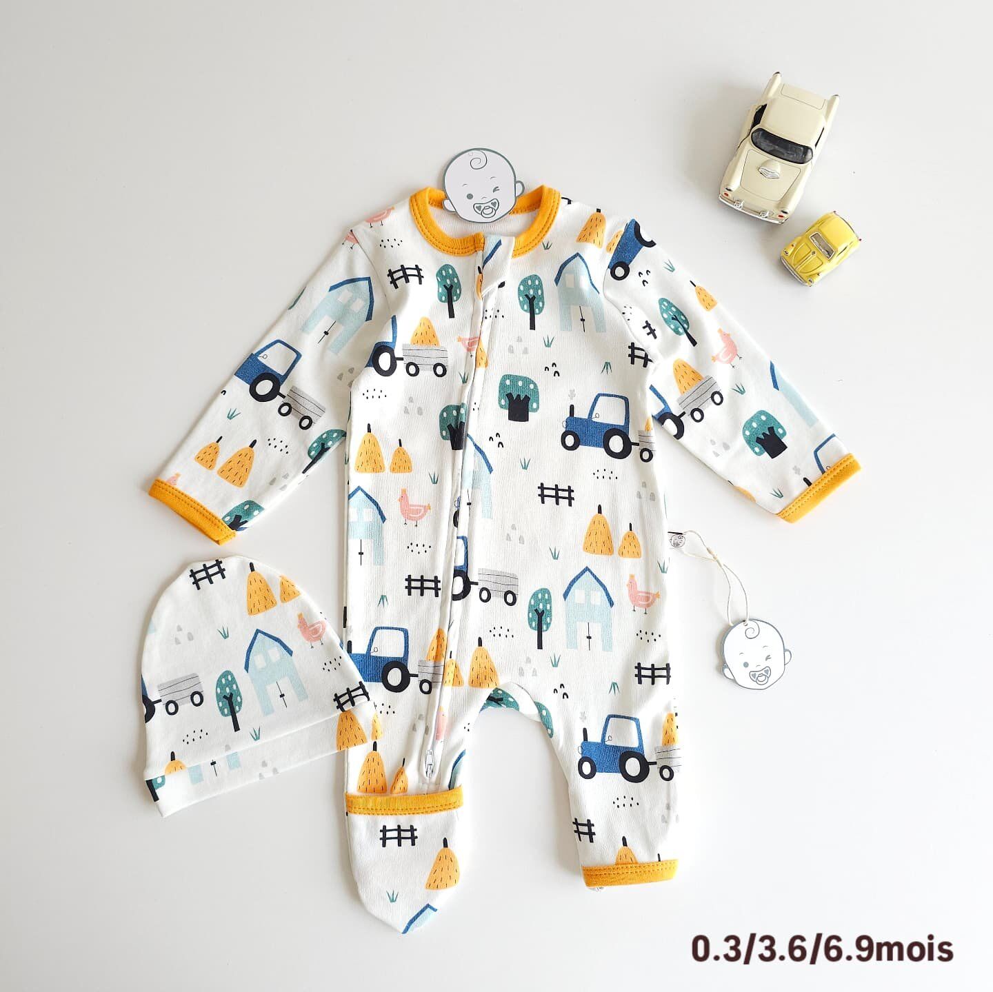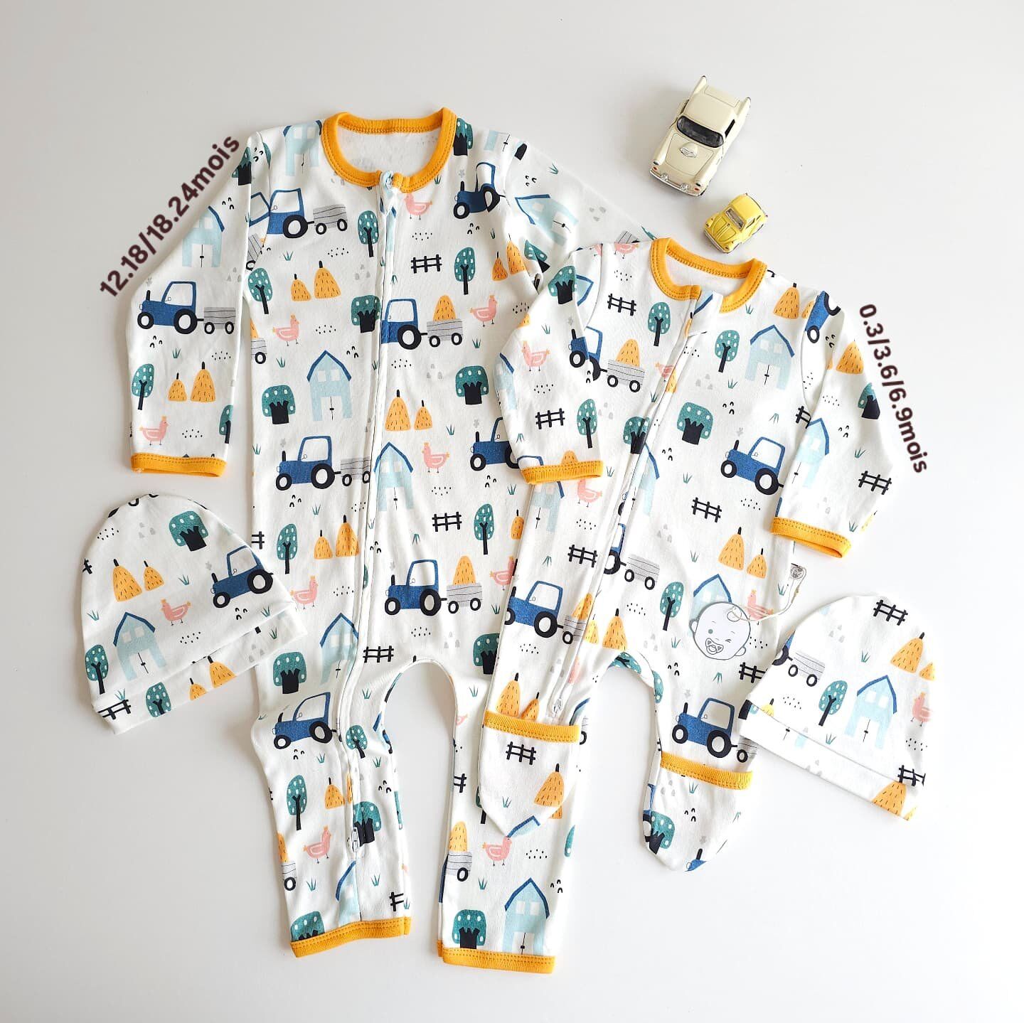 Dotées d’une fermeture éclair double sens (2-way zipper), elles permettent un change rapide et facile, de jour comme de nuit. Chaque grenouillère est accompagnée d’un petit bonnet assorti pour un look craquant et une chaleur optimale.