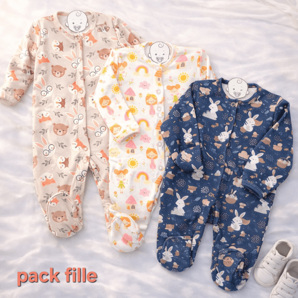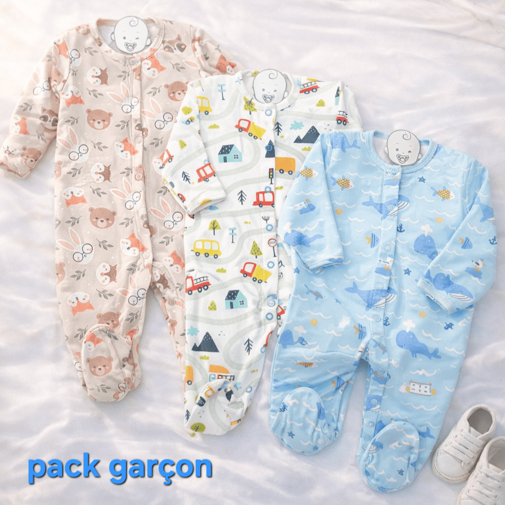 Simplifiez votre quotidien avec notre pack de 3 grenouillères pensées pour le confort de bébé et la tranquillité des mamans.