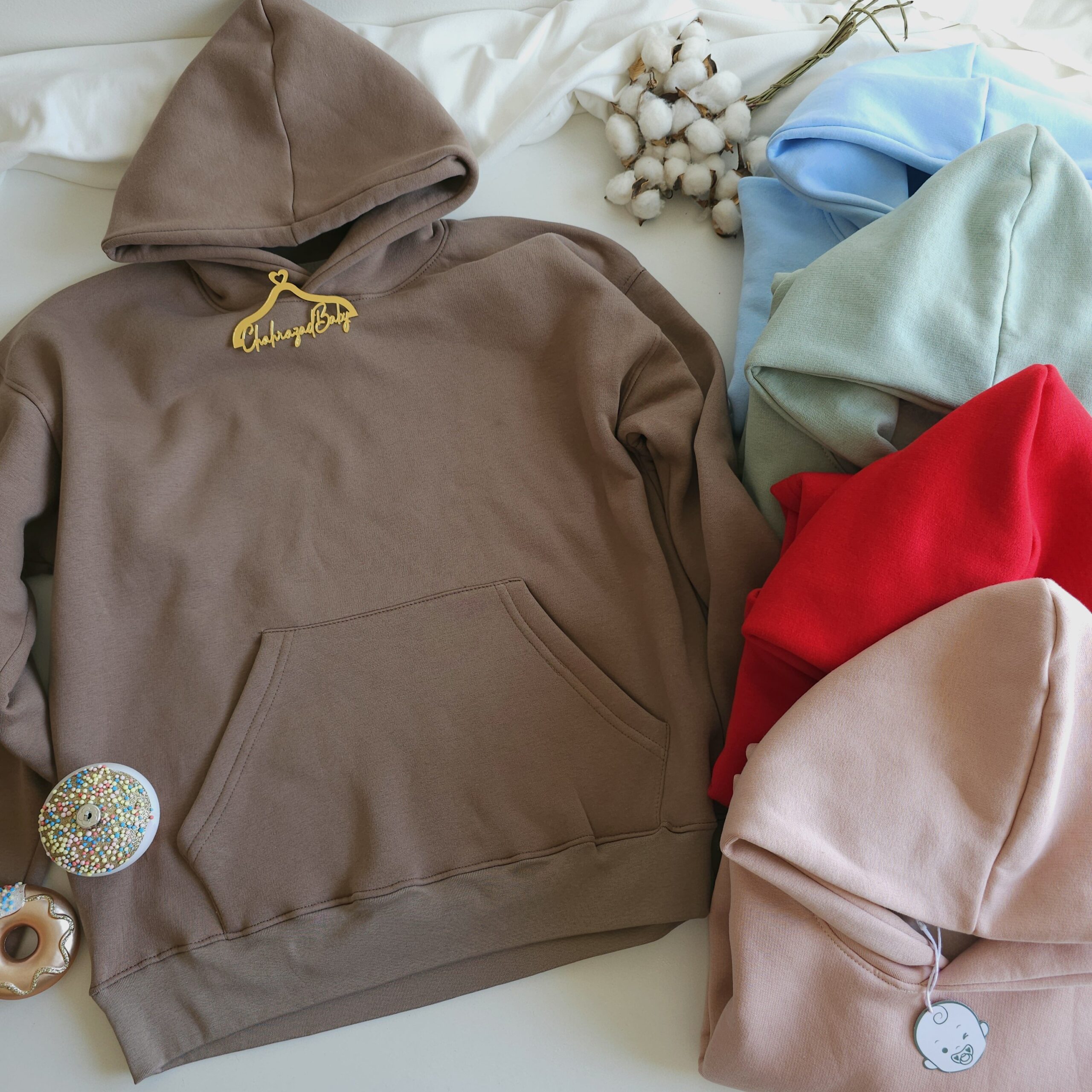 bleu ciel, marron, rose, rouge, vert