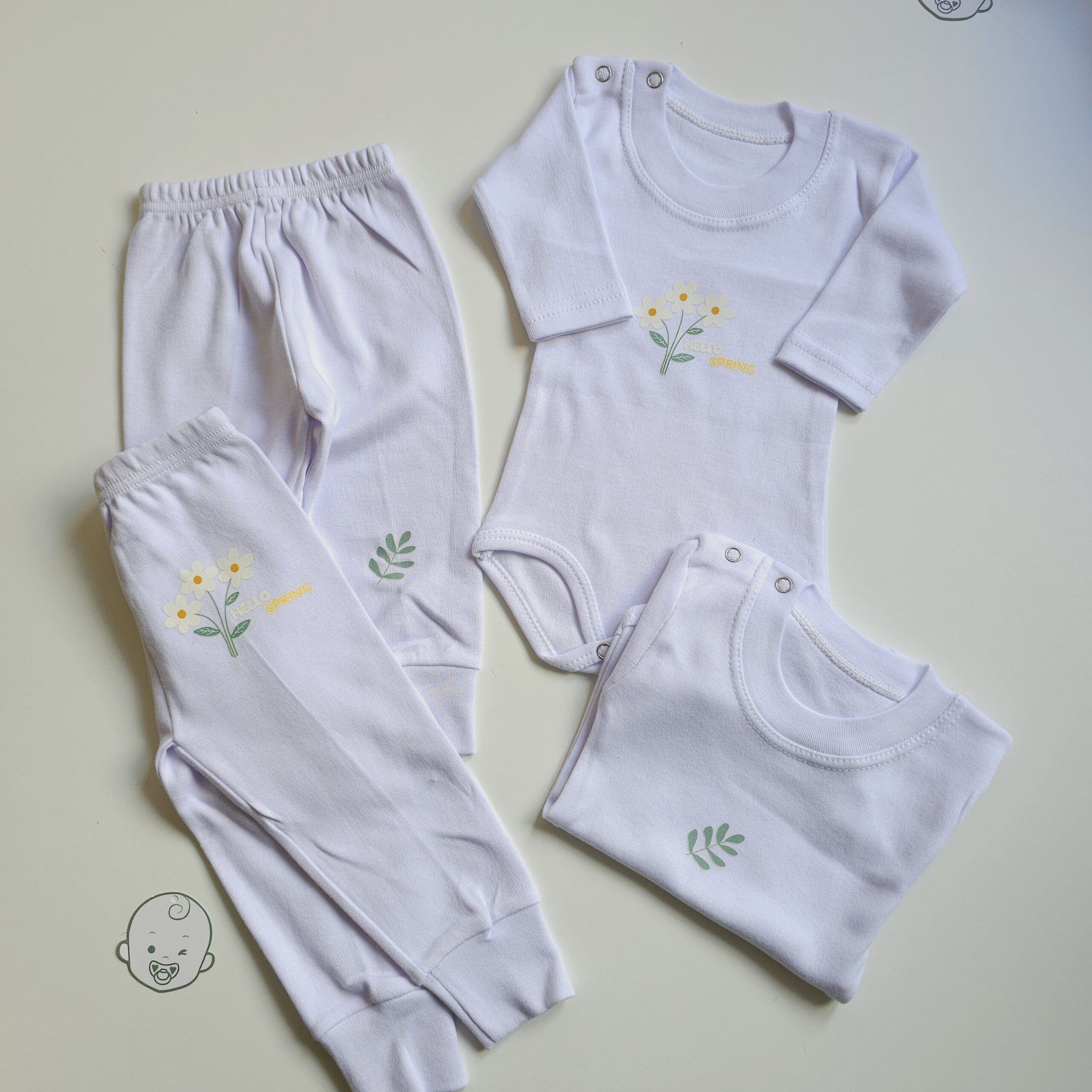 Pack pratique et complet contenant toutes les tenues indispensables pour bébé durant le séjour à la clinique. Confectionné en coton doux et confortable, respectueux de la peau délicate du nouveau-né, idéal dès le premier jour.