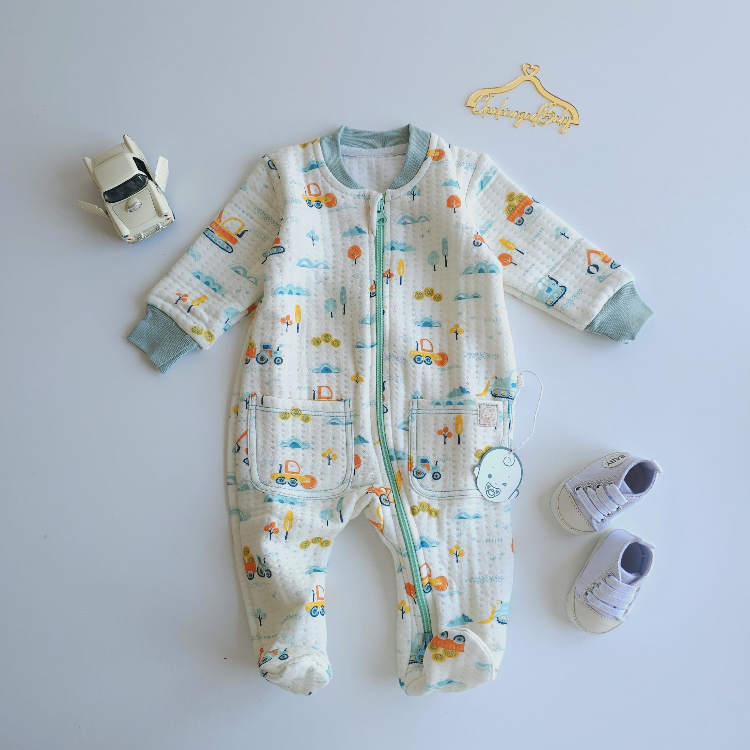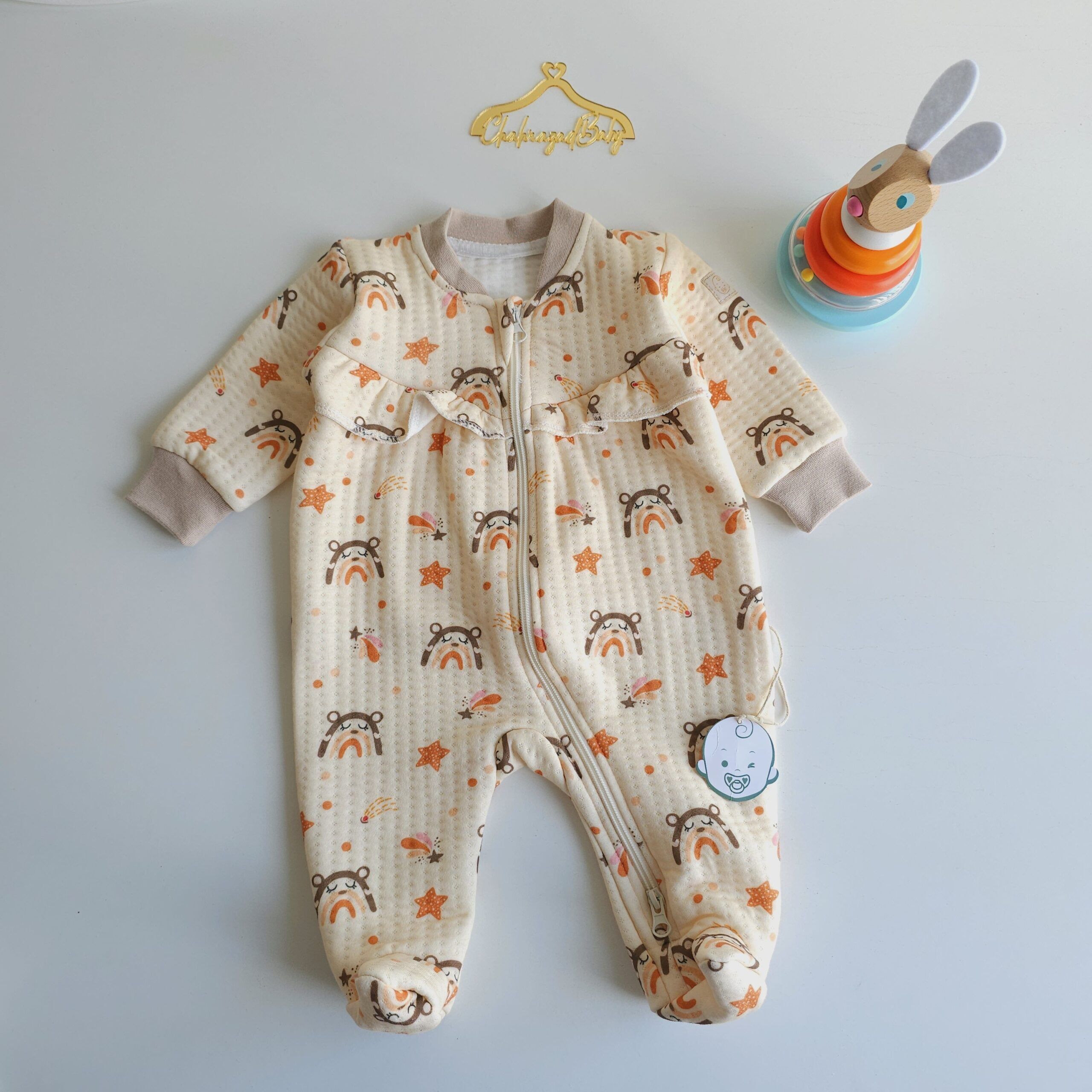 Adoptez cette adorable grenouillère pour bébé, idéale pour garder votre enfant bien au chaud durant les nuits fraîches.